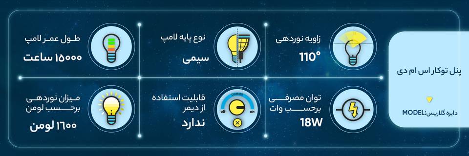 چراغ ال ای دی 18 وات پارس شعاع توس مدل سولاریس